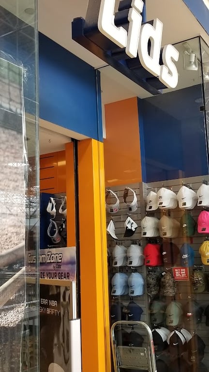 The image shows the entrance of Lids, a store specializing in hats and sports apparel.