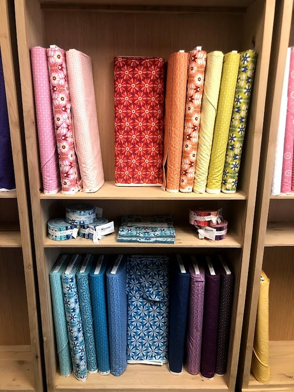 Love this quilt shop. Lots of new fabric lines as well as basics sorted by color.