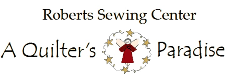 The image features the logo of Roberts Sewing Center, highlighting its identity as "A Quilter's Paradise.