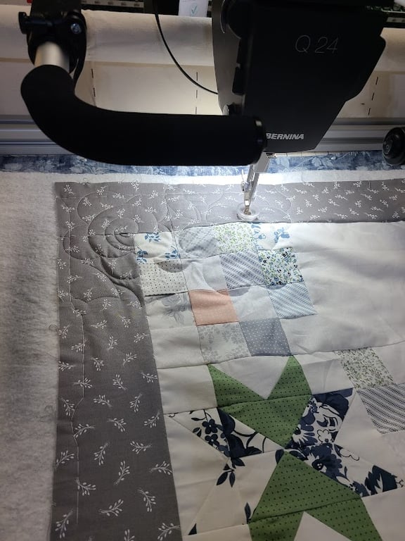 I've had several projects quilted here, but unfortunately, I will not be using their services anymore. The images are two that were recently quilted. As you can see, the (blue quilt)back was not placed square on the machine, and as a result, it is off by an inch or so when it was trimmed (by the store employee). I was told (both owners) that I should have been more specific about centering, and they "don't do many pieced backings"... what? I'm not the professional quilter, but common sense should prevail ...I left large margins for them square the back. The grey quilt was trimmed unevenly and NOT with a straight edge as they said...you can see the the cut is not straight and it has an obvious scissor gouge. On examination and discussion with the owners, I was told they measure from the inside border and use that continuous measurement to trim. It was off by 1/4 inch. It still doesn't account for the serious gouge. They trimmed off the discrepancy. Upon binding, I saw the machine quilting had bunched up and pulled the fabric, which would account for the difference. Each of these projects have very special sentiment. Each quilt incorporates a piece of Japanese silk passed down to my mother, who recently passed; the quilts are being made for each of her grandchildren. Both quilts will be gifted , but I am so disappointed in the quilters, for what I feel is a lack of accountability. Their resolve was to offer 20% in refund.