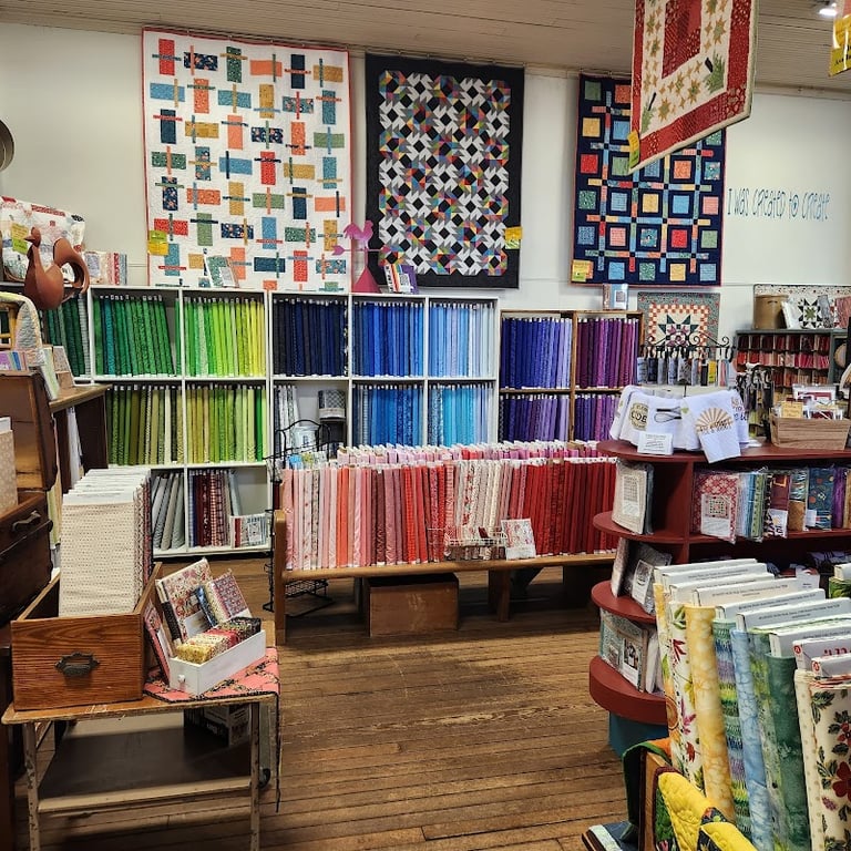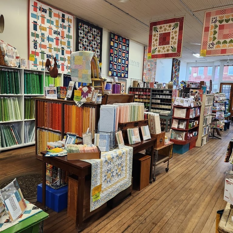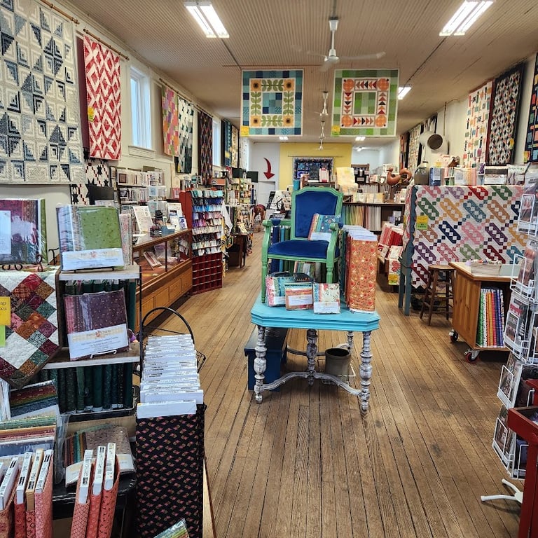 I enjoyed this store! Beautiful quilting fabric, flannels, wool, Valdani perle cotton, kits, in-house patterns--definitely worth visiting. They also have workspace upstairs including beds, full baths, and a kitchen. Good service, too.