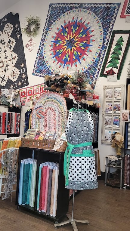 So happy to find this quilt shop. Large inventory of beautiful fabrics. So many notions. Great classroom space. Loved seeing all the quilts hanging throughout the store.