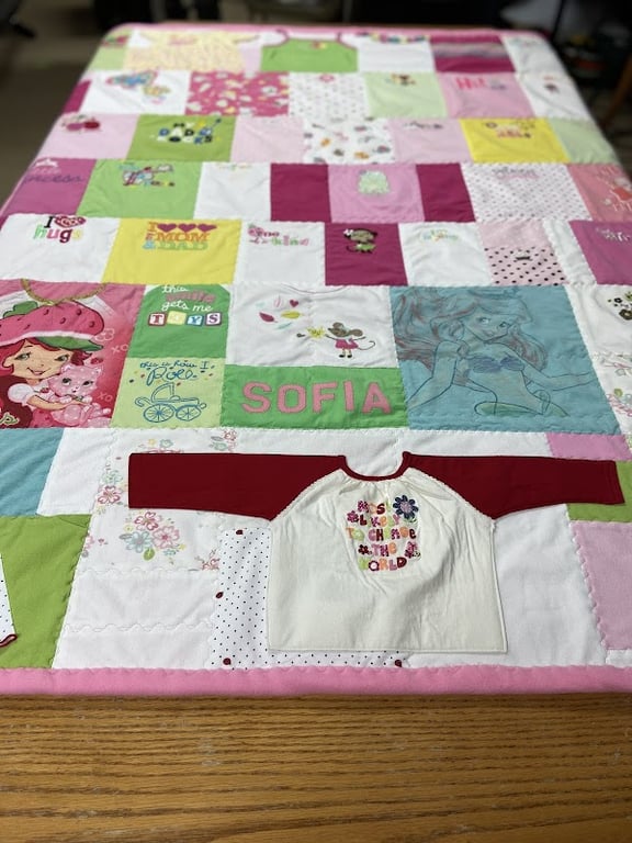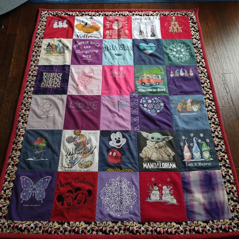 I received my Quilt yesterday and its beautiful. It is a memorial quilt for my son who passed away in 2020 at 32 years old. Made out of his shirts! I’ll cherish forever. I’m going to have another one made from his hunting clothes. Karla Mae was so kind and asked questions that would make my quilt personal to my family. Highly recommend this family company.