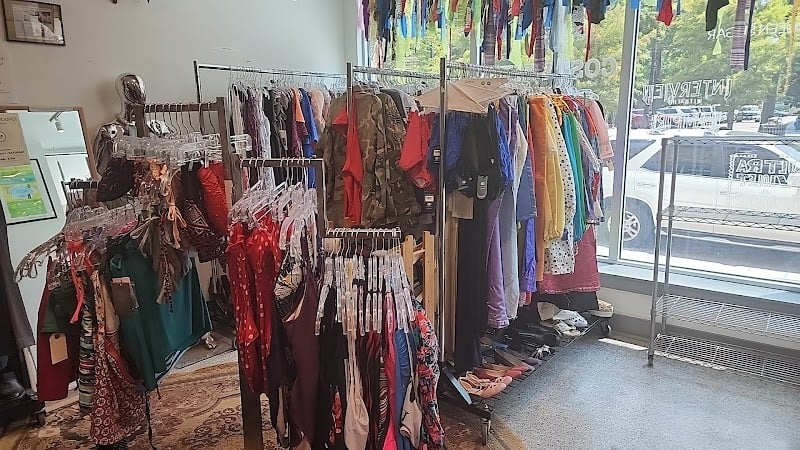 It's a fiber arts and beading thrift! Well, yes, it also has clothes (including some very cool costume items) but the fabric bolt ends and yarn and ribbon and jewelry blanks and sewing notions and so forth take up half the store! And there's a classroom in the back with, like, five sewing machines and a huge table for cutting out patterns. The staff person I talked to was a fellow yarnwork nerd and helped me find the good stuff. They take donations so if you're quitting one of these hobbies, you know where to donate.