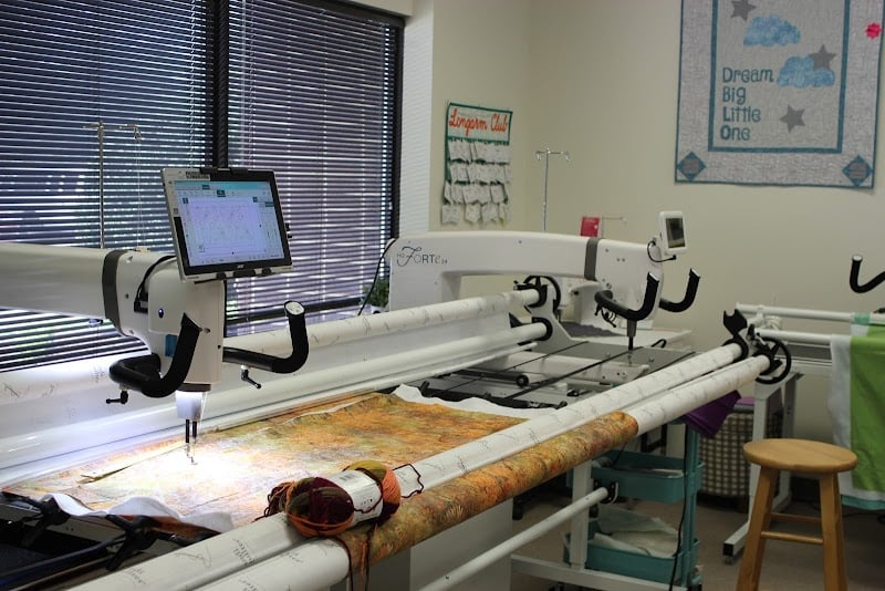 Perfect shop with the latest fabrics, great class offerings, and friendly faces. I've brought my last 3 finished quilt 'sandwiches' here to be stitched and was delighted each time. Pics show a mid-century type geometric stitch on a customized baby blanket.