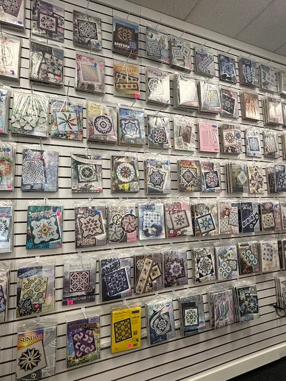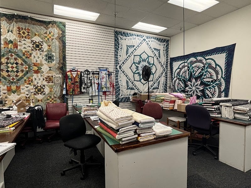 Nice shop that has 4 long arm machines. It looks like it is rental/practice before purchase and or long arm service. There are many kits with fancy quilts with paper templates. Good fabrics, notions and machines for sale and repair service as well.