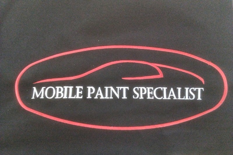 The image features a logo for a mobile paint specialist, showcasing a sleek car outline with the text "MOBILE PAINT SPECIALIST" in bold white lette...