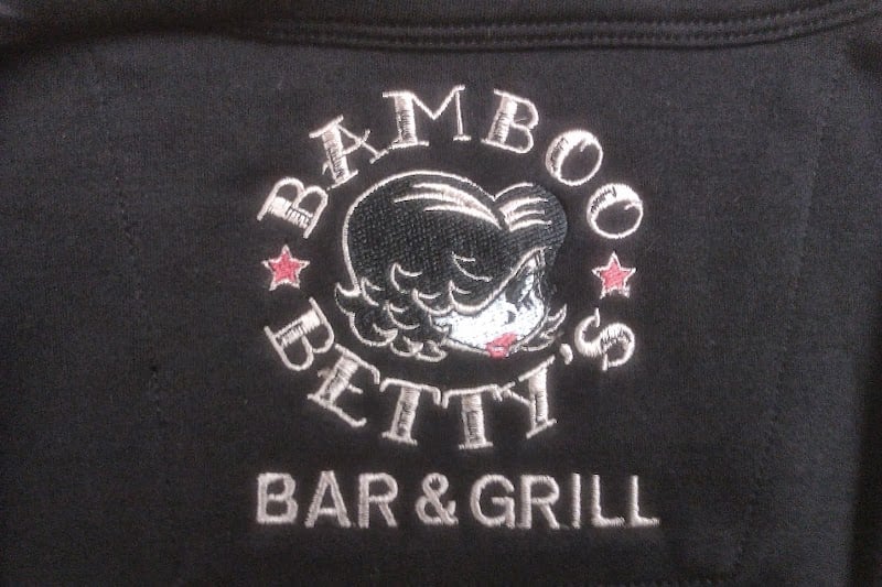 The image features an embroidered logo for "Bamboo Betty's Bar & Grill," showcasing a vintage-style design with a stylized woman and bold text on a...