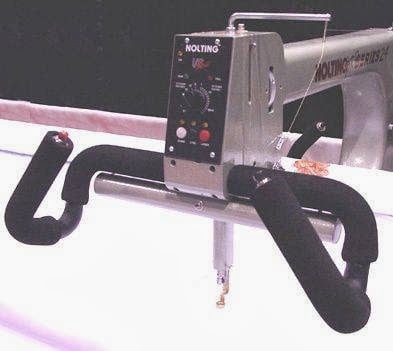 The image features a Nolting quilting machine, showcasing its control panel and handles.