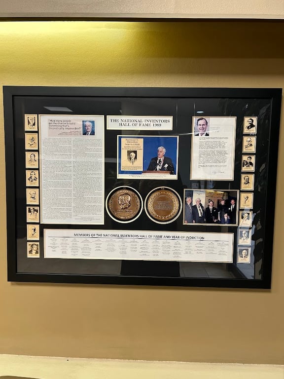 The image features a framed display honoring members of the National Inventors Hall of Fame.