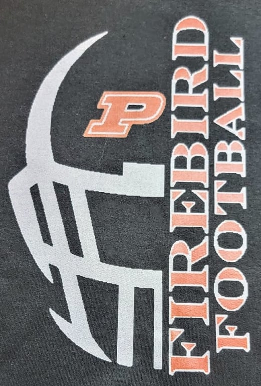 The image features a close-up of a black fabric displaying a graphic design of a football helmet alongside the text "FIREBIRD FOOTBALL.