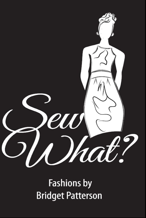 The image features a stylish logo for SewWhat, showcasing a fashionable dress design alongside the store's name. The minimalist design emphasizes creativity in sewing and fashion.
