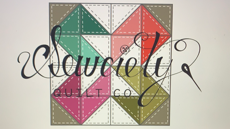 The image features the logo of Sewciety Quilt Co., showcasing a colorful quilt pattern with geometric shapes in shades of pink, green, and blue.