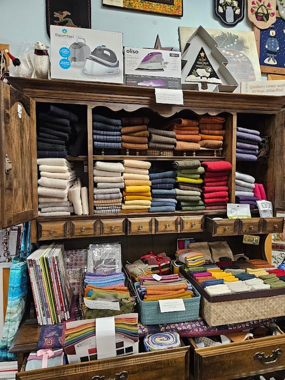 Great QUILT shop! They have everything your heart desires when it comes to making projects. Wool, batting, beautiful fabrics, flannels and minkys. Templates, rulers, notions and patterns for all mediums. Such talent for an awesome little hole in the wall!