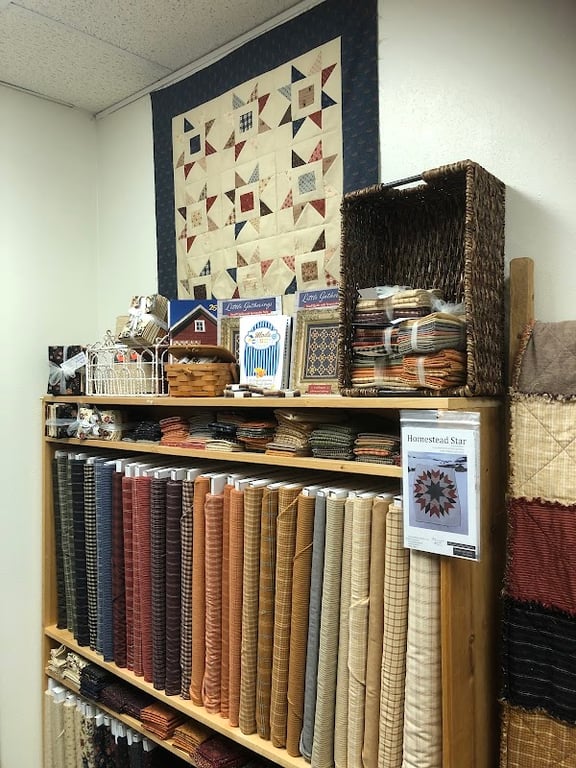 Old-fashioned quilting shop selling modern & vintage fabrics, plus wool & related supplies.