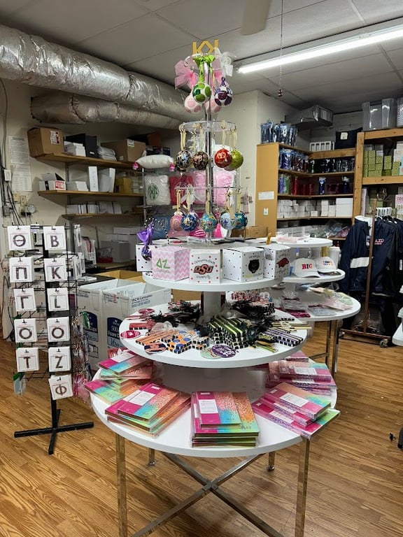 This is the perfect spot for all things Greek life, with tons of cute merch like stickers, pillows, and ornaments for every organization. It’s a great place to find gifts. The only downside is that the store can feel a bit cluttered, making it hard to browse. But if you have time, you’ll definitely find something fun! Highly recommend, just not five stars due to the layout.