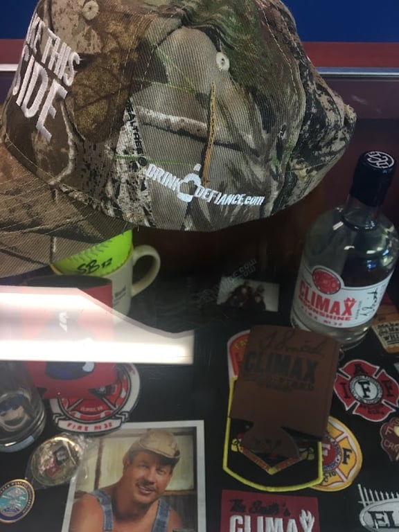 The image features a camouflage cap with the text "Drink Defiance" displayed prominently.