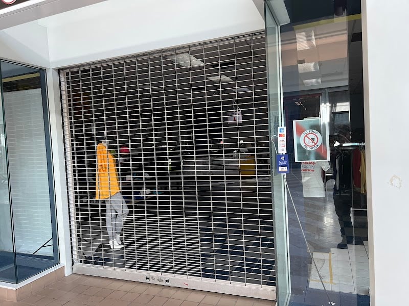 The image shows the exterior of Design 4 You - Screen Printing and Embroidery, featuring a closed storefront with a metal security gate.